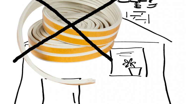 Vorsicht: Sind bereits Gummidichtungen an den Fenstern zwischen Rahmen und Flügel vorhanden, dürfen darauf keine weiteren Dichtungen aufgeklebt werden. Der Druck auf die Mechanik wird zu stark und dies verursacht Schäden, die sehr teuer sind.  Klebedichtungen nur an Stellen kleben wo genügend Platz vorhanden ist. Bei falscher Handhabung wird auch hier die Mechanik in Mitleidenschaft gezogen! Lieber den Spezialisten fragen.